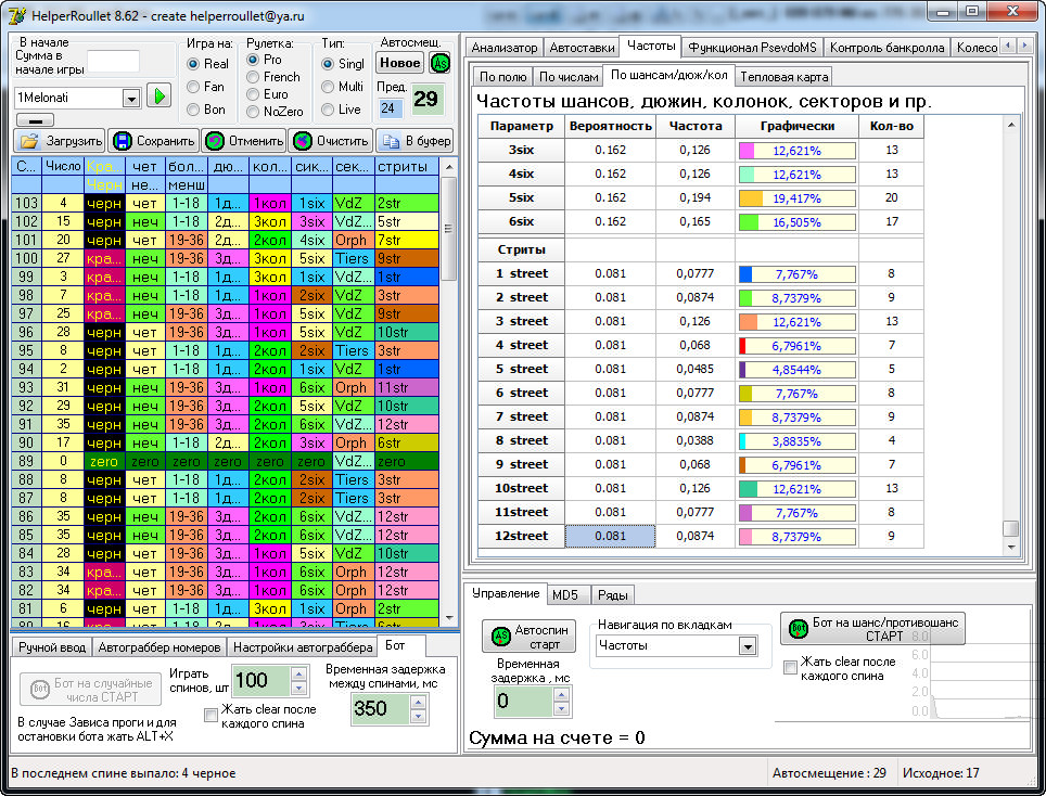 Итак продажи возобновляю. Предлагается покупателям: прога helperroullet v8.62(скрины см. выше) + автокоординатор v3.6 (это дополнение к HR чтоб работала автоматизация и бот)- цена 45WMZ. Обновления бесплатно.