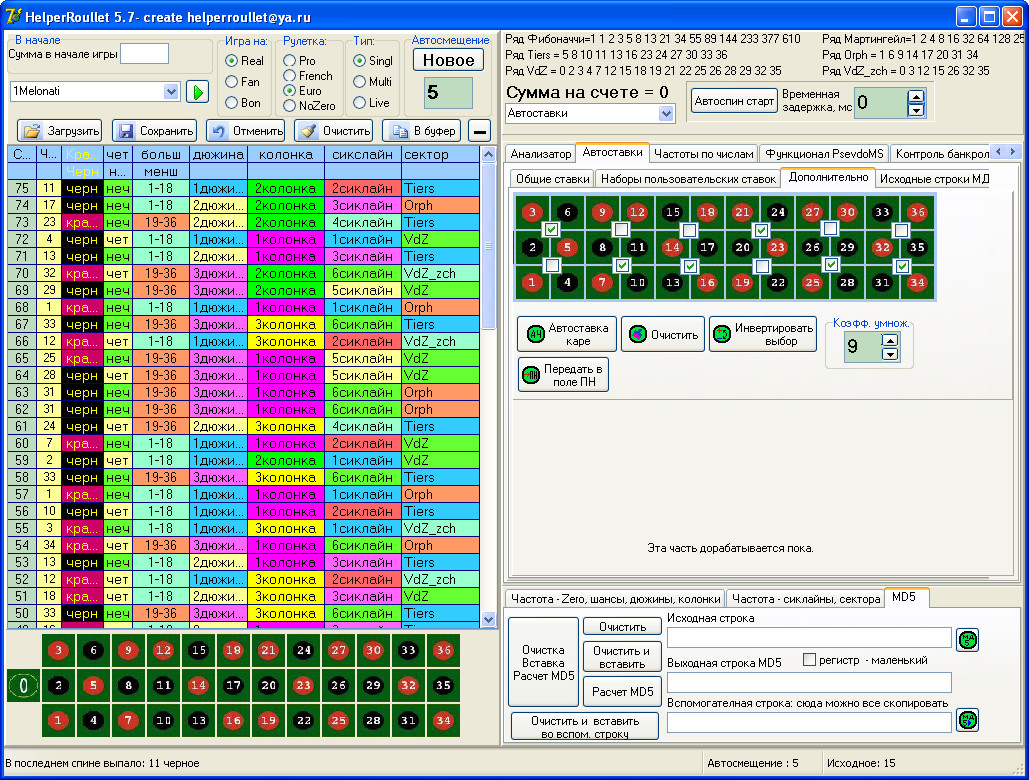 Итак продажи возобновляю. Предлагается покупателям: прога helperroullet v8.62(скрины см. выше) + автокоординатор v3.6 (это дополнение к HR чтоб работала автоматизация и бот)- цена 45WMZ. Обновления бесплатно.