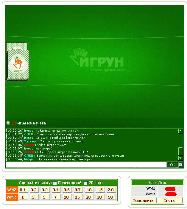 Базар вокруг игры / Неказиношные игры / Играть в дурака на деньги