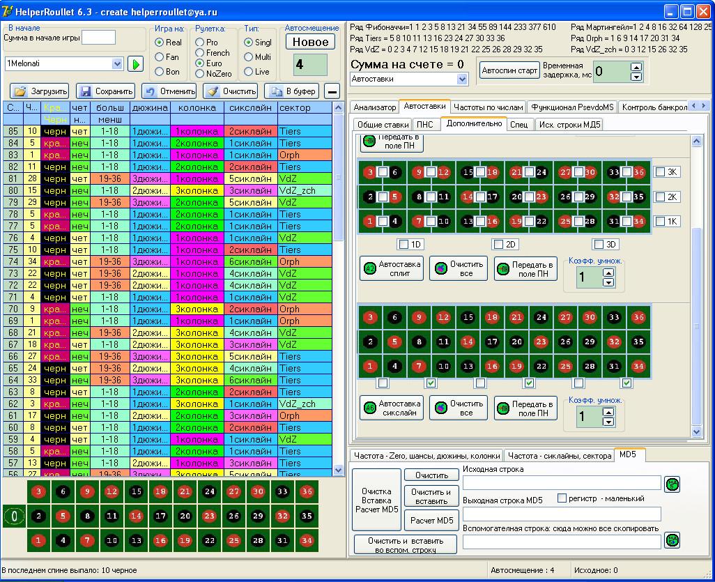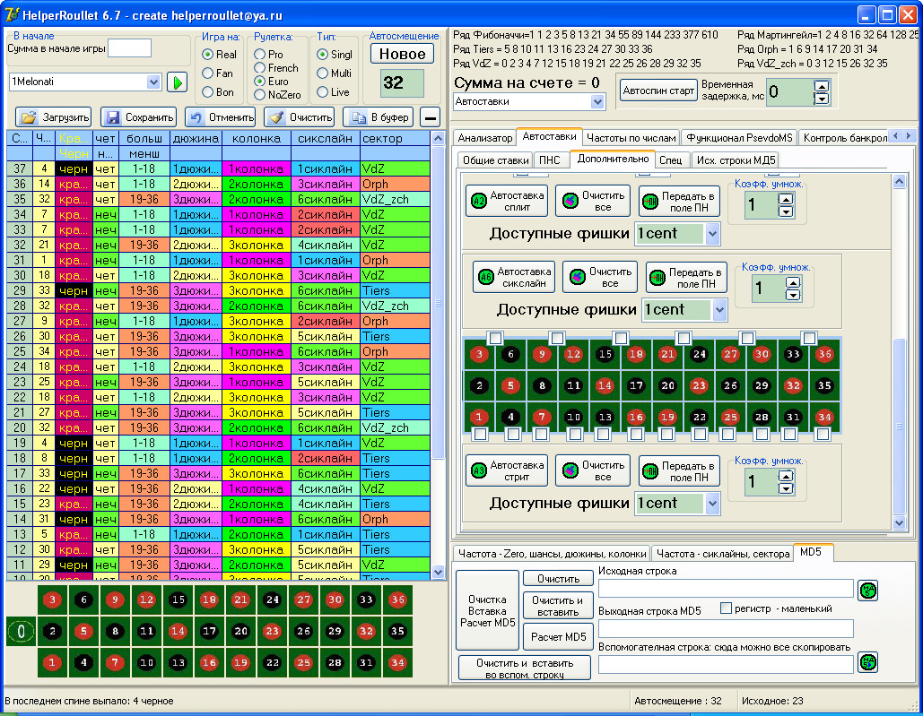 Итак продажи возобновляю. Предлагается покупателям: прога helperroullet v8.62(скрины см. выше) + автокоординатор v3.6 (это дополнение к HR чтоб работала автоматизация и бот)- цена 45WMZ. Обновления бесплатно.