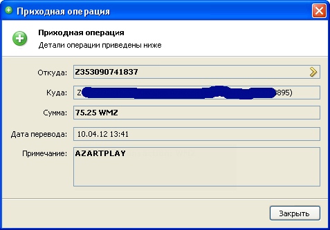 И еще, тут как-то бездеп 20 баксов отыграл в азартплей. Вот скрин выплаты на 75$: